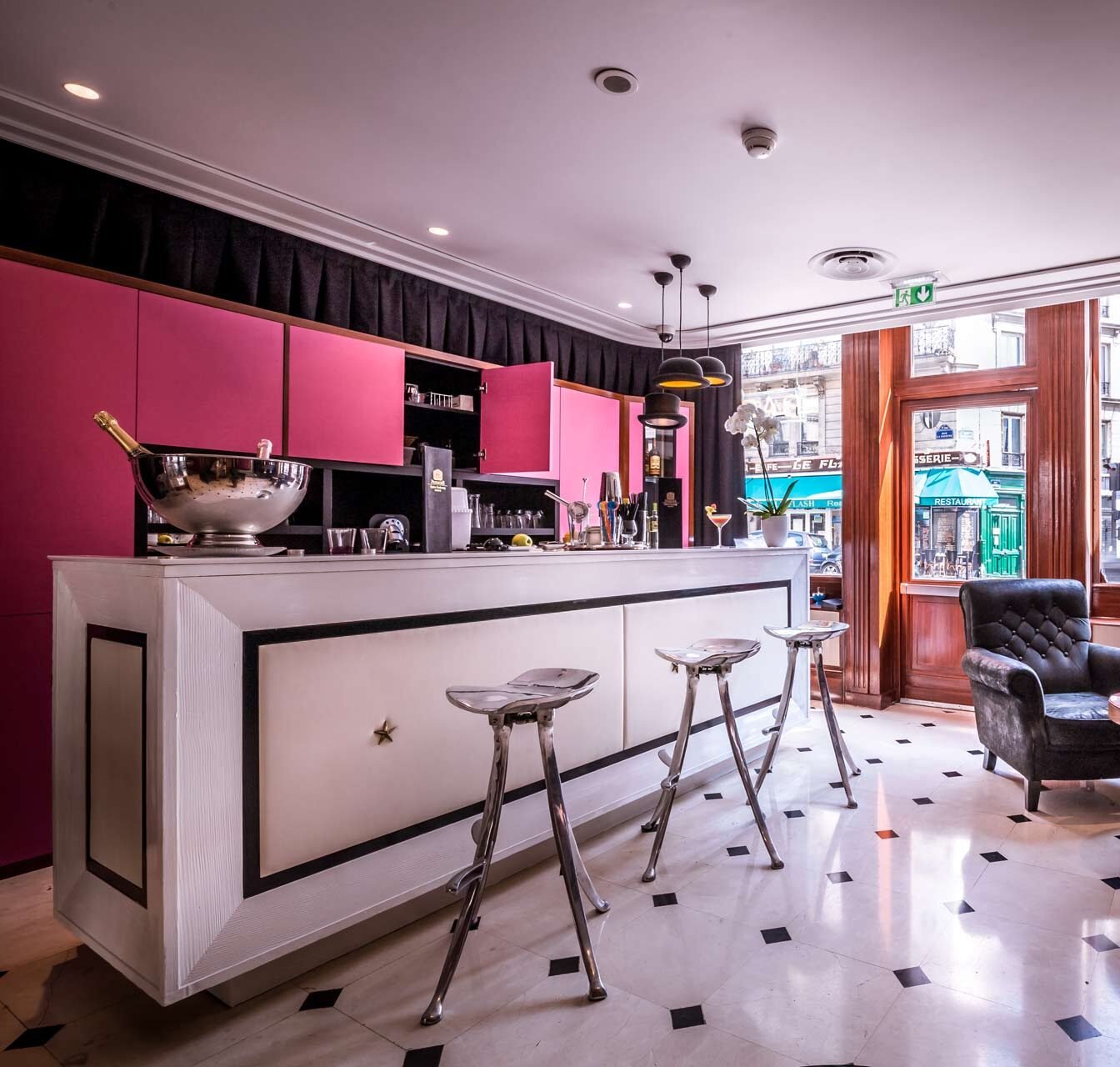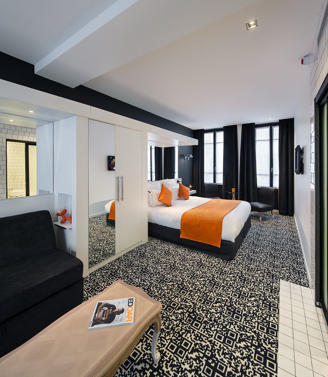 In the heart of the 10th arrondissement of Paris and at the crossroads of Pigalle, Montmartre and the Canal Saint-Martin, this 4* establishment reflects this picturesque district. The interior design of the hotel and its 29 rooms combines the simplicity of black and white with the glare of red-orange.