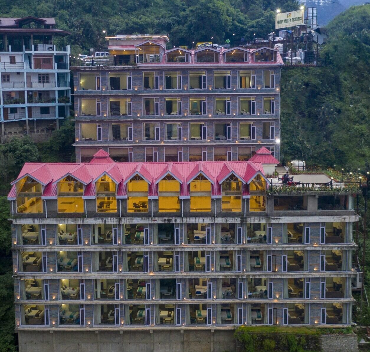 Snow Valley Resorts introduces itself as one of the biggest Centrally Air conditioned Hotel of Shimla having 72 rooms, with all modern facilities and surrounded by panoramic view of the majestic mountains, age old pine trees and overlooking the town of Shimla. The hotel offers unique blend of fine hospitality and unparalleled services. Relax in this elegant luxury mountainside hotel that bask in the daytime sunshine creating a warm and welcoming retreat. Snow Valley Resorts is located in one of the prime locations of Shimla on NH-22 at Ghora Chowki. Surrounded by peaceful green pine woods, we make one of the top holiday accommodations in Shimla region. The tasteful accommodation has local design touches with rich colors, wooden floors ,plush furnishings and optional stunning views.